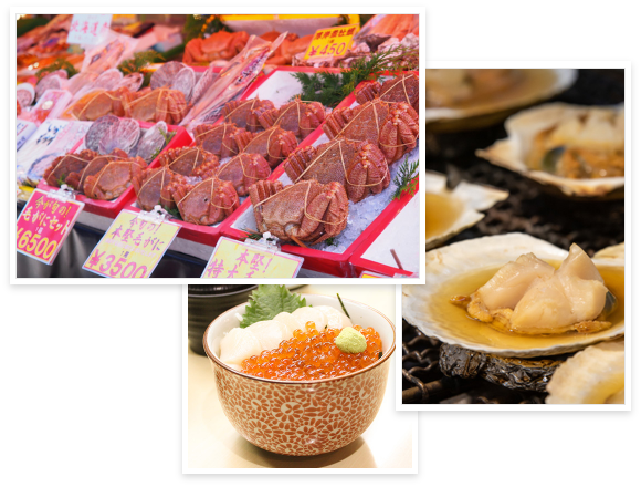 JR函館駅からすぐ右手に位置する函館朝市は約1万坪の規模を誇る函館の台所です。朝6時(5月〜12月は5時)から14時すぎまでやっているため、少し寝坊しても大丈夫!蟹や鮭といった海産物や農園からの直売品の販売、鮮度抜群の海の幸がたくさん乗った海鮮丼などが楽しめる食堂もある函館の代表的なエリアです。その時の旬の食材はお店の人が教えてくれますので、気軽に声をかけてみましょう!